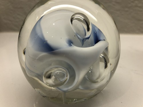 Karg Art Rollin Karg Abstract White Blue Signed Glass Paperweight W A Perfect Bubble Poshmark